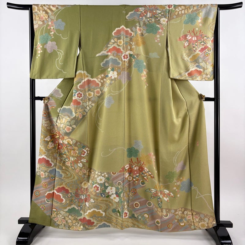 【訪問着】 緑系 抹茶色 名品 B 約160cm~約169cm 裄丈65cm (M)size 袖丈50cm-60cm 9990-29990 二万以下