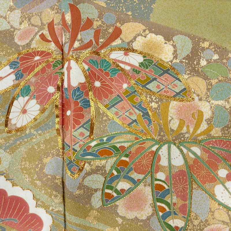 【着物ランク】名品 【素材】正絹 【身丈】約163cm 【裄丈】約65.5cm 【袖丈】約55.5cm 【袖幅】約33.5cm 【前幅】約24cm 【後幅】約30cm 【サイズ】M 【着物仕立て】袷 【着用時期】10~5月 【状態ランク】ランクB 【着物着用シーン】披露宴、パーティー、お見合い、式典、茶会