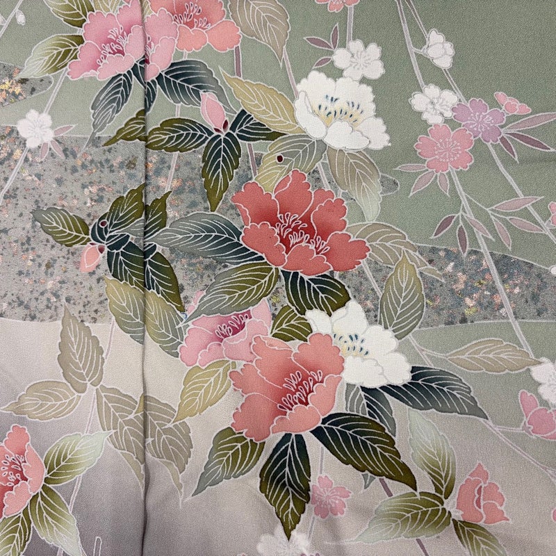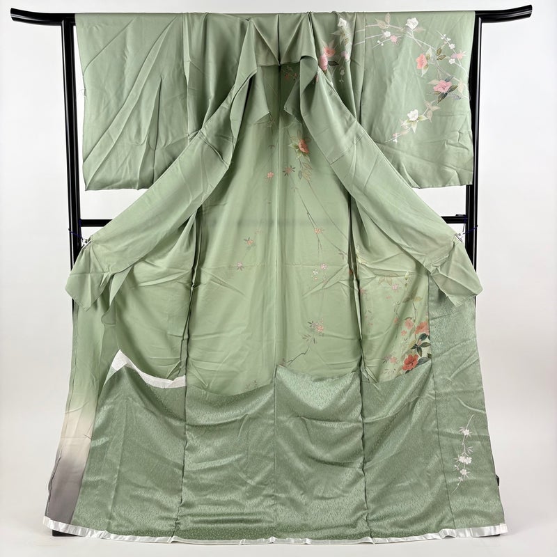 【訪問着】 灰色系 灰緑 秀品 B 約180cm~約189cm 裄丈66cm 袖丈50cm-60cm 7990-9980 二万以下