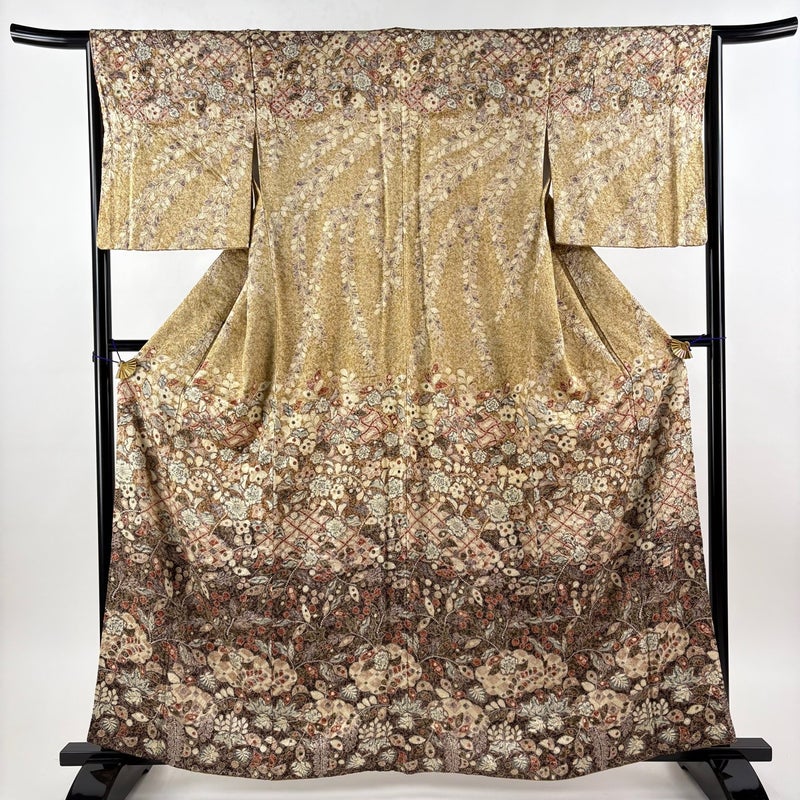 【訪問着】 黄色系 山吹茶色 秀品 A 約160cm~約169cm 裄丈65cm (M)size 袖丈48cm 9990-29990 美品 二万以下