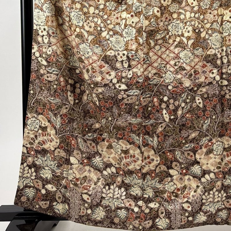 【着物ランク】秀品 【素材】正絹 【身丈】約162cm 【裄丈】約65cm 【袖丈】約48cm 【袖幅】約33.5cm 【前幅】約25cm 【後幅】約31.5cm 【サイズ】M 【着物仕立て】袷 【着用時期】10~5月 【状態ランク】ランクA 【着物着用シーン】披露宴、パーティー、お見合い、式典、茶会
