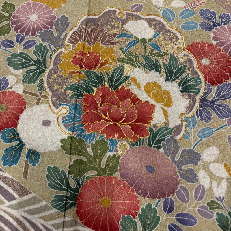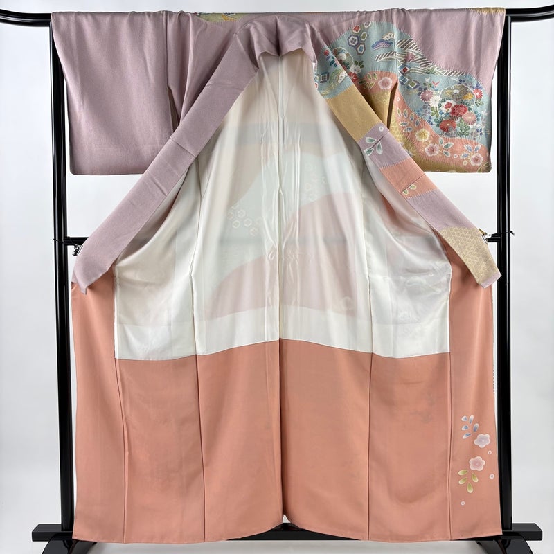 【着物ランク】名品 【素材】正絹 【身丈】約161cm 【裄丈】約66cm 【袖丈】約47cm 【袖幅】約33.5cm 【前幅】約24cm 【後幅】約30cm 【サイズ】M 【着物仕立て】袷 【着用時期】10~5月 【状態ランク】ランクA 【着物着用シーン】披露宴、パーティー、お見合い、式典、茶会