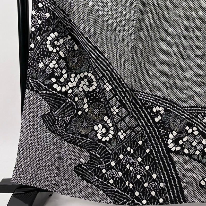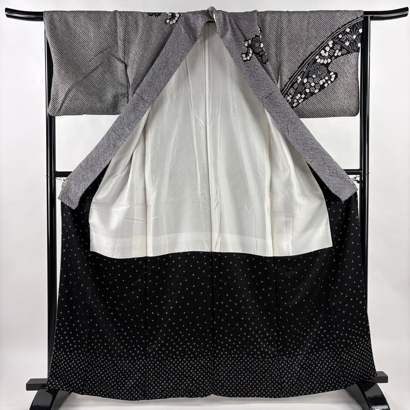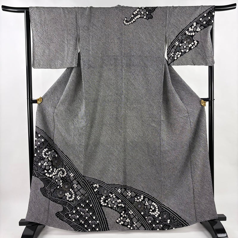 【訪問着】 黒系 黒 名品 A 約160cm~約169cm 裄丈65cm (M)size 袖丈46cm以下 9990-29990 美品 二万以下