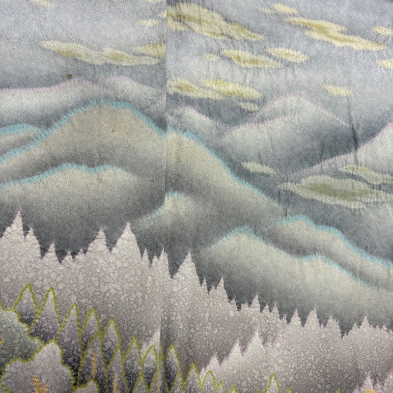 【着物ランク】名品 【素材】正絹 【身丈】約168cm 【裄丈】約67.5cm 【袖丈】約48cm 【袖幅】約34cm 【前幅】約29cm 【後幅】約32.5cm 【サイズ】L 【着物仕立て】袷 【着用時期】10~5月 【状態ランク】ランクB 【着物着用シーン】披露宴、パーティー、お見合い、式典、茶会