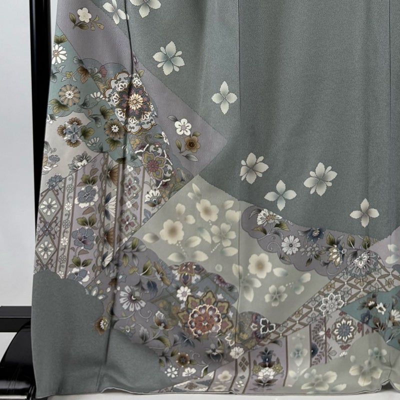 【訪問着】 灰色系 灰色 名品 B 約170cm~約179cm 裄丈67cm-68cm (L)size 袖丈48cm 9990-29990 二万以下