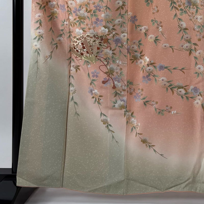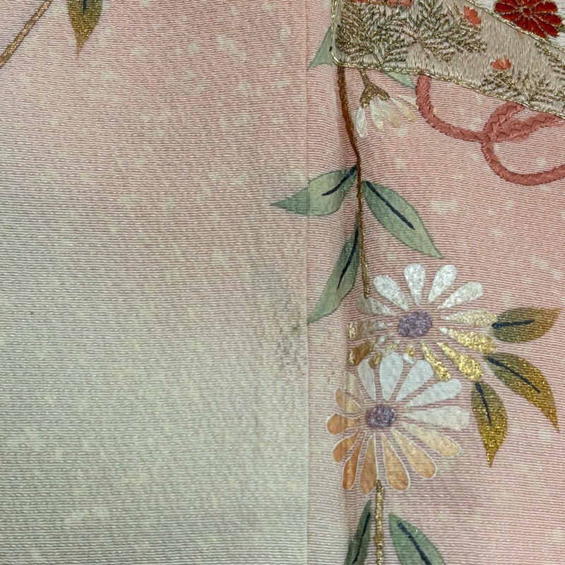 【着物ランク】名品 【素材】正絹 【身丈】約164.5cm 【裄丈】約65cm 【袖丈】約55cm 【袖幅】約33cm 【前幅】約23.5cm 【後幅】約29.5cm 【サイズ】M 【着物仕立て】袷 【着用時期】10~5月 【状態ランク】ランクB 【着物着用シーン】披露宴、パーティー、お見合い、式典、茶会