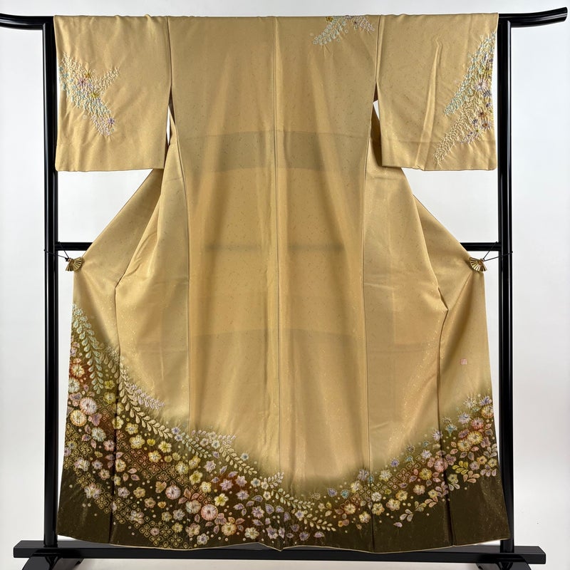 【訪問着】 黄色系 薄黄土色 名品 A 約150cm~約159cm 裄丈63cm-64cm (M)size 袖丈47cm 9990-29990 美品 二万以下