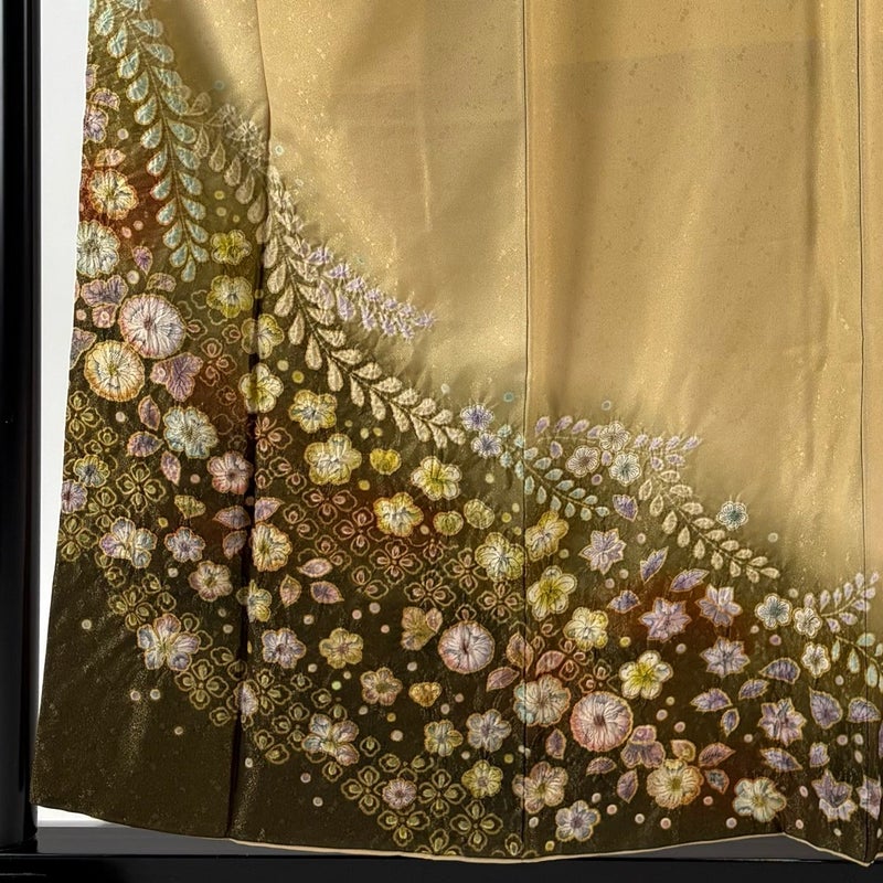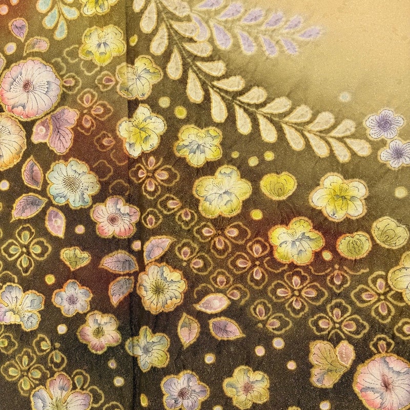 【着物ランク】名品 【素材】正絹 【身丈】約157cm 【裄丈】約64cm 【袖丈】約47cm 【袖幅】約33cm 【前幅】約23.5cm 【後幅】約29.5cm 【サイズ】M 【着物仕立て】袷 【着用時期】10~5月 【状態ランク】ランクA 【着物着用シーン】披露宴、パーティー、お見合い、式典、茶会