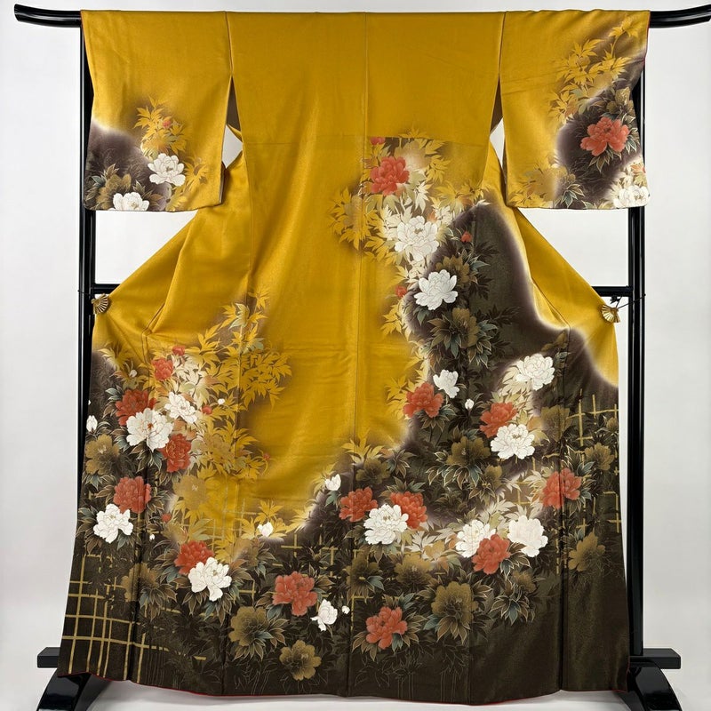 【訪問着】 黄色系 山吹色 秀品 B 約160cm~約169cm 裄丈66cm (M)size 袖丈50cm-60cm 7990-9980 二万以下