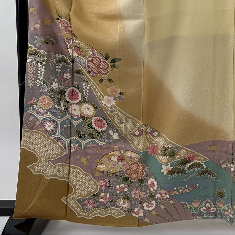 【着物ランク】秀品 【素材】正絹 【身丈】約164cm 【裄丈】約67.5cm 【袖丈】約49.5cm 【袖幅】約35cm 【前幅】約24cm 【後幅】約31cm 【サイズ】L 【着物仕立て】袷 【着用時期】10~5月 【状態ランク】ランクB 【着物着用シーン】披露宴、パーティー、お見合い、式典、茶会