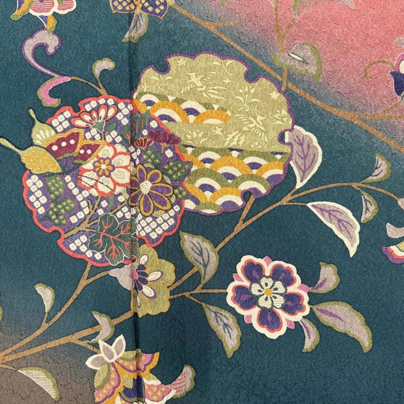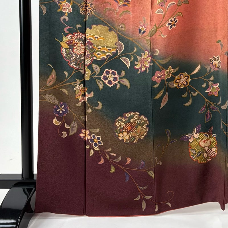 【着物ランク】秀品 【素材】正絹 【身丈】約166cm 【裄丈】約67cm 【袖丈】約55cm 【袖幅】約34cm 【前幅】約24cm 【後幅】約30cm 【サイズ】M 【着物仕立て】袷 【着用時期】10~5月 【状態ランク】ランクC 【着物着用シーン】披露宴、パーティー、お見合い、式典、茶会