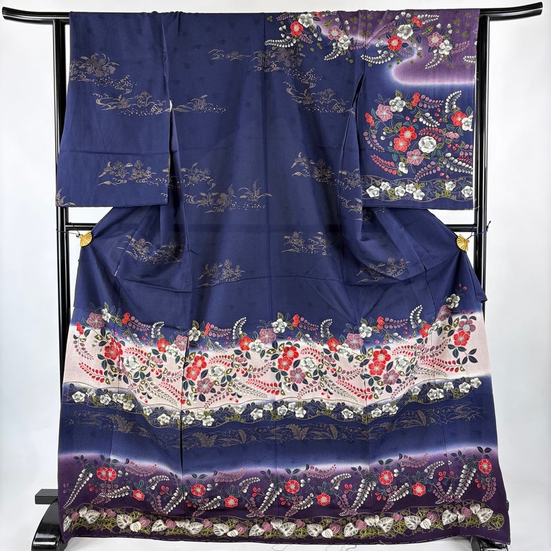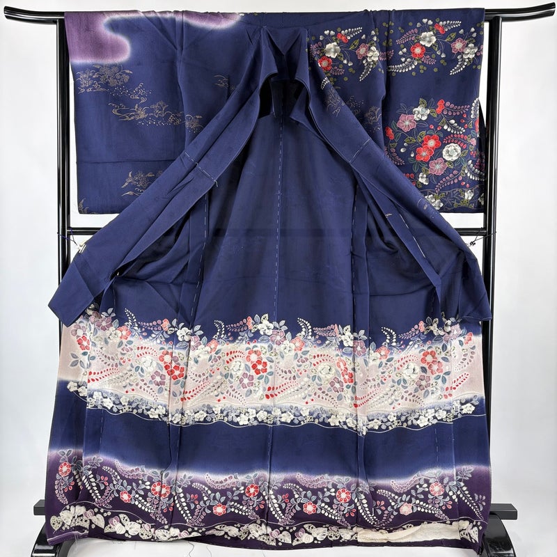 【訪問着】 青系 紺色 秀品 B 約170cm~約179cm 裄丈66cm (M)size 袖丈61cm~90cm 7990-9980 二万以下