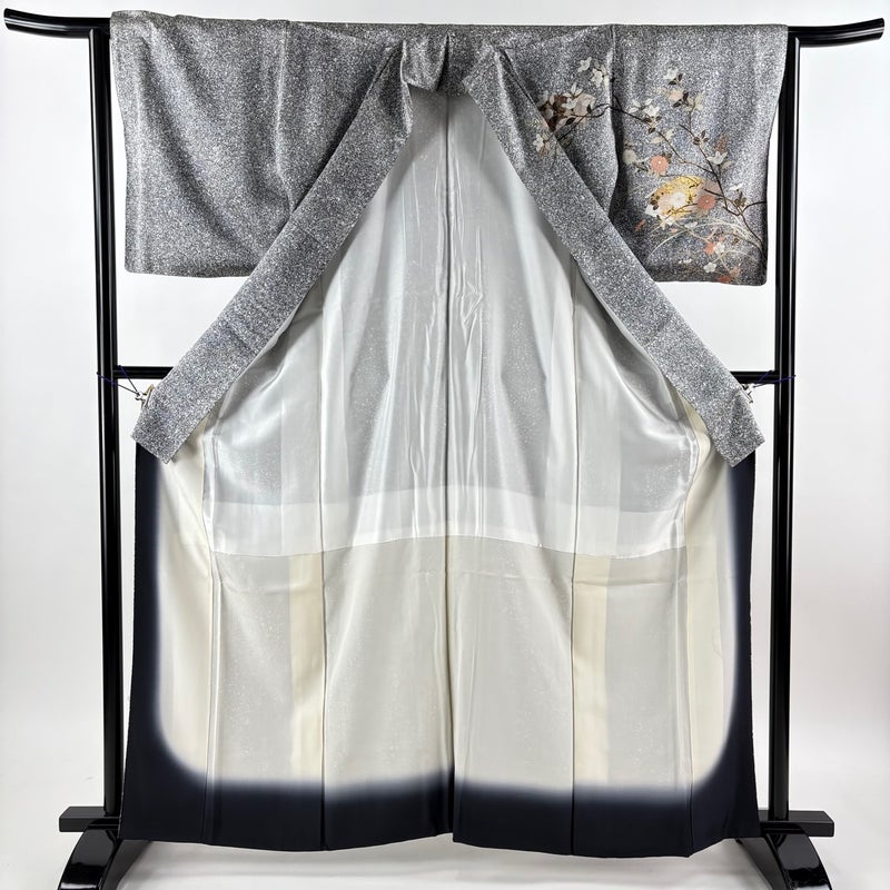 【訪問着】 灰色系 黒灰 秀品 A 約160cm~約169cm 裄丈63cm-64cm (M)size 袖丈49cm 9990-29990 美品 二万以下