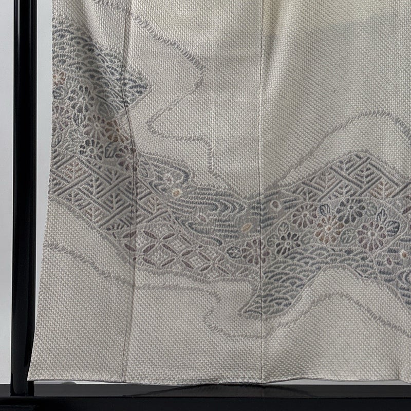 【訪問着】 灰色系 灰白 秀品 C 約150cm~約159cm 裄丈63cm-64cm (M)size 袖丈48cm 7990-9980 二万以下