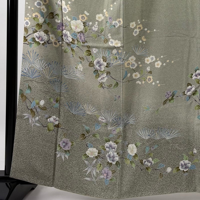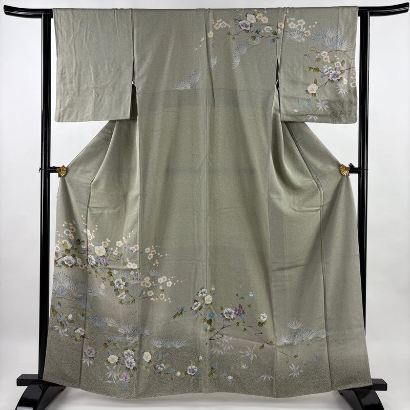 【訪問着】 灰色系 灰緑 秀品 B 約160cm~約169cm 裄丈62cm以下 (S)size 袖丈49cm 7990-9980 二万以下