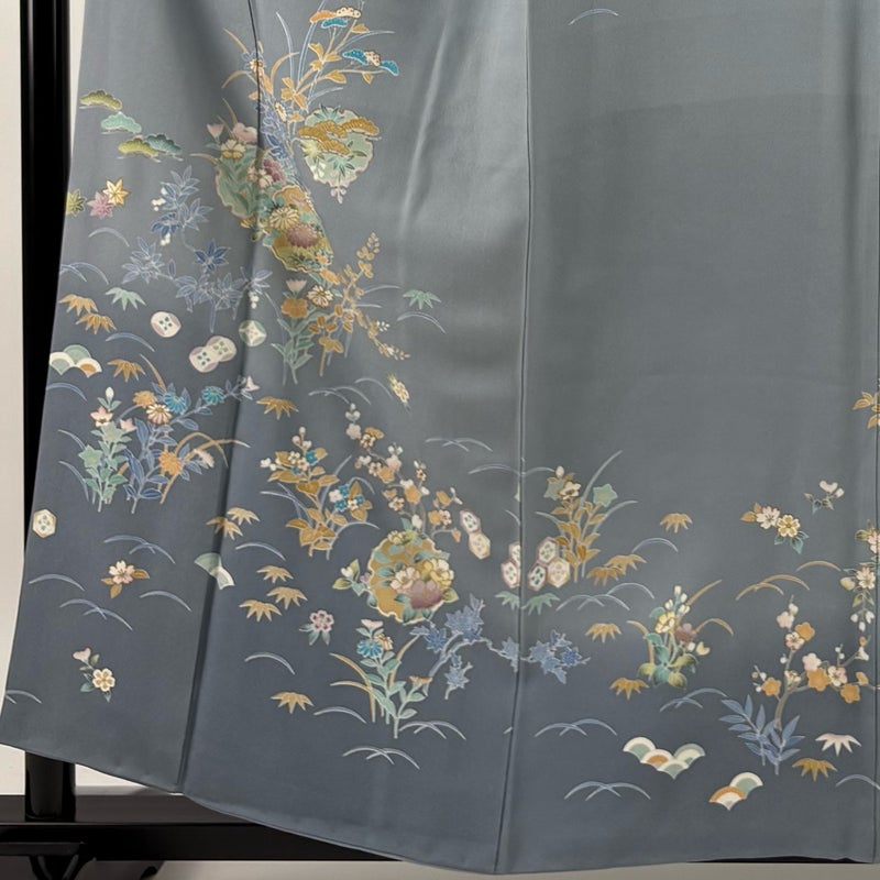 【訪問着】 灰色系 青灰色 秀品 B 約150cm~約159cm 裄丈63cm-64cm (S)size 袖丈46cm以下 7990-9980 二万以下