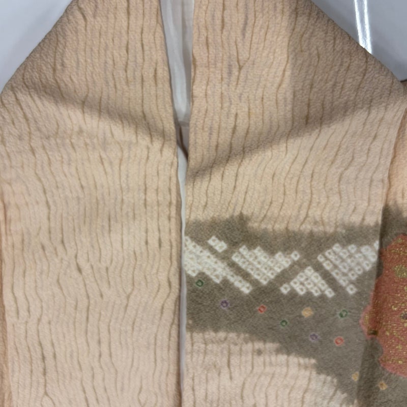 【訪問着】 赤系 薄オレンジ 秀品 A 約160cm~約169cm 裄丈65cm (M)size 袖丈49cm 9990-29990 美品 二万以下