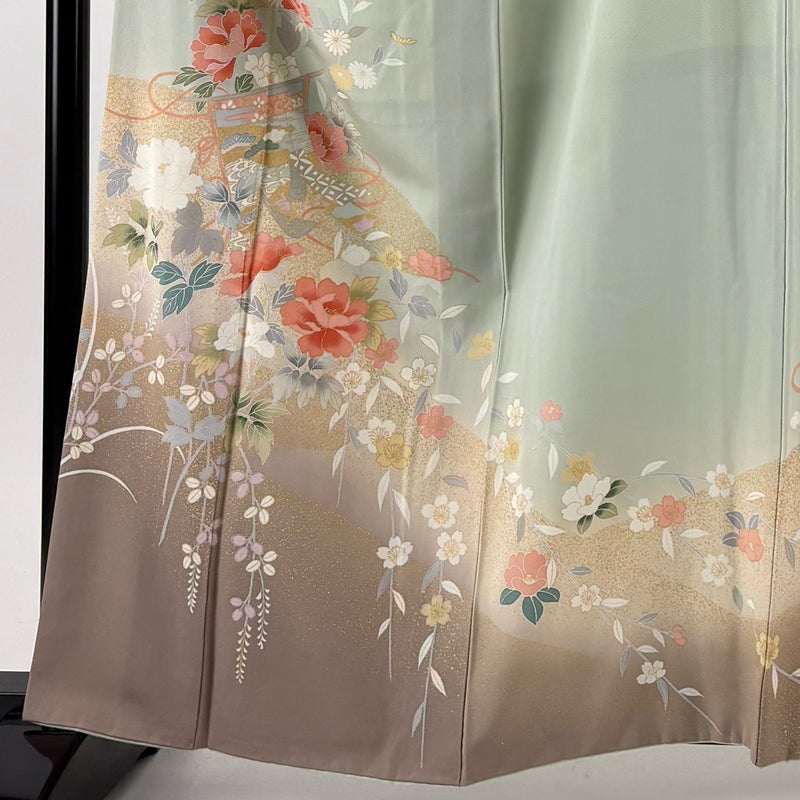 【訪問着】 緑系 薄緑 秀品 B 約160cm~約169cm 裄丈69cm以上 (L)size 袖丈48cm 7990-9980 二万以下