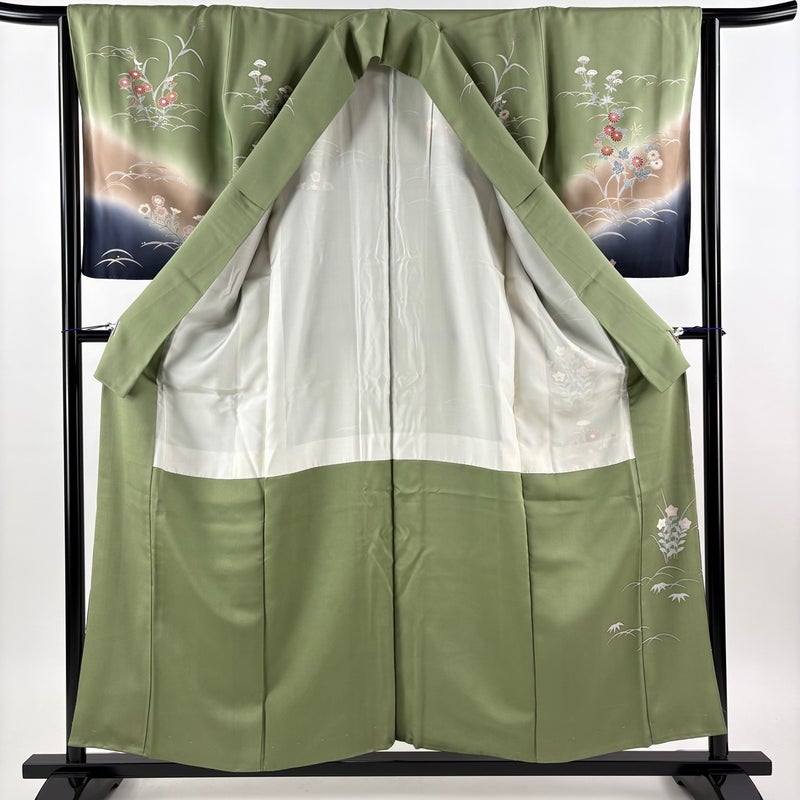 【訪問着】 緑系 よもぎ色 秀品 B 約150cm~約159cm 裄丈63cm-64cm (M)size 袖丈50cm-60cm 7990-9980 二万以下
