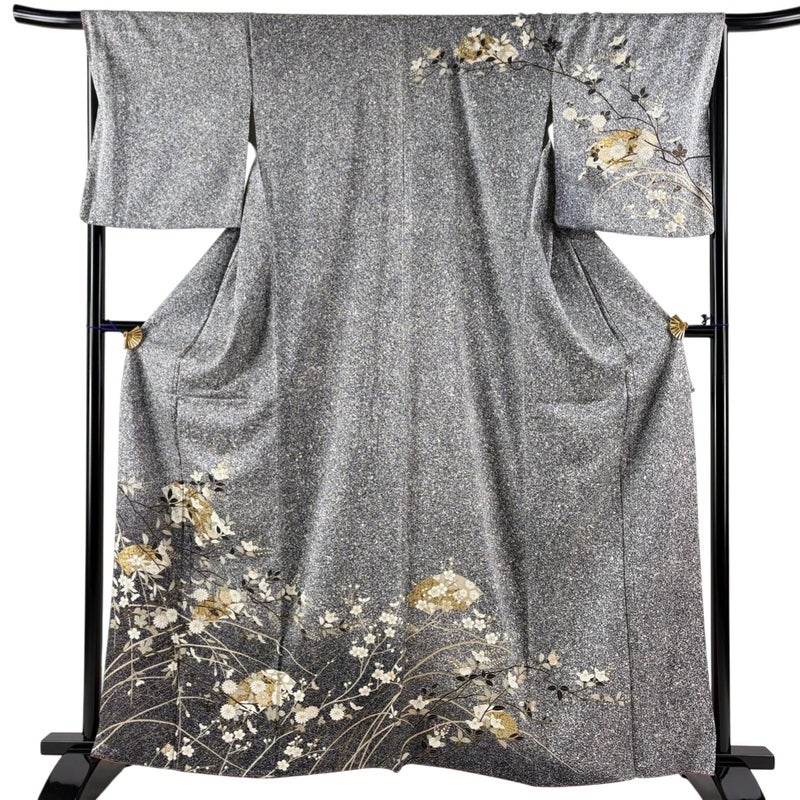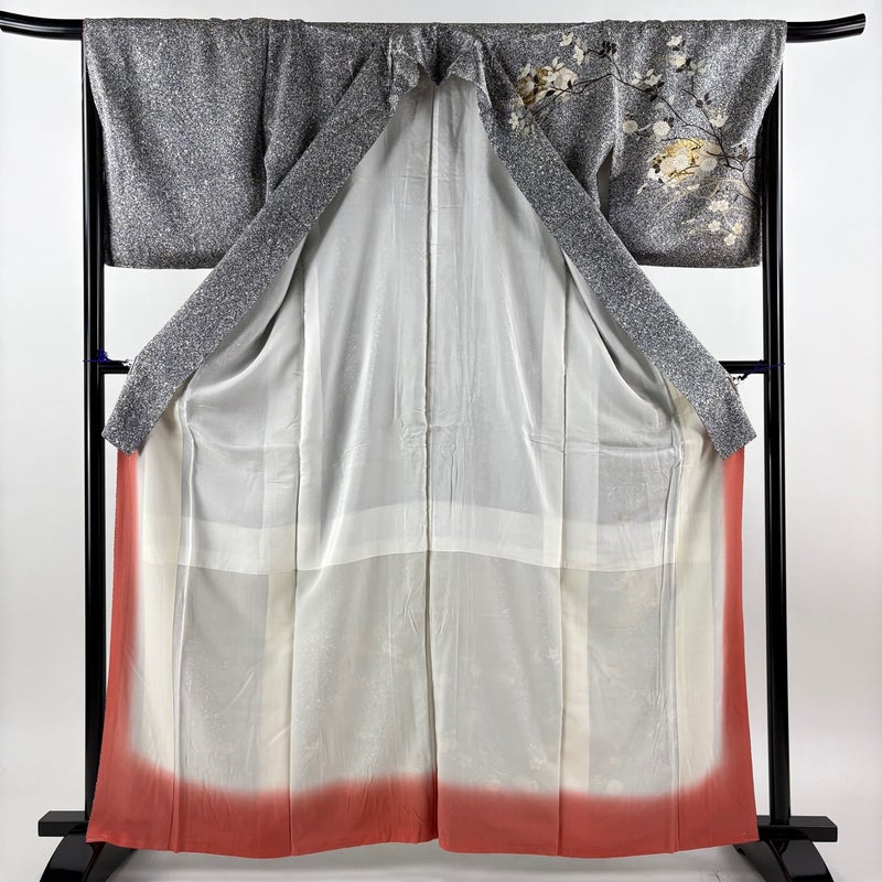 【訪問着】 灰色系 黒灰 秀品 A 約160cm~約169cm 裄丈67cm-68cm (M)size 袖丈48cm 9990-29990 美品 二万以下
