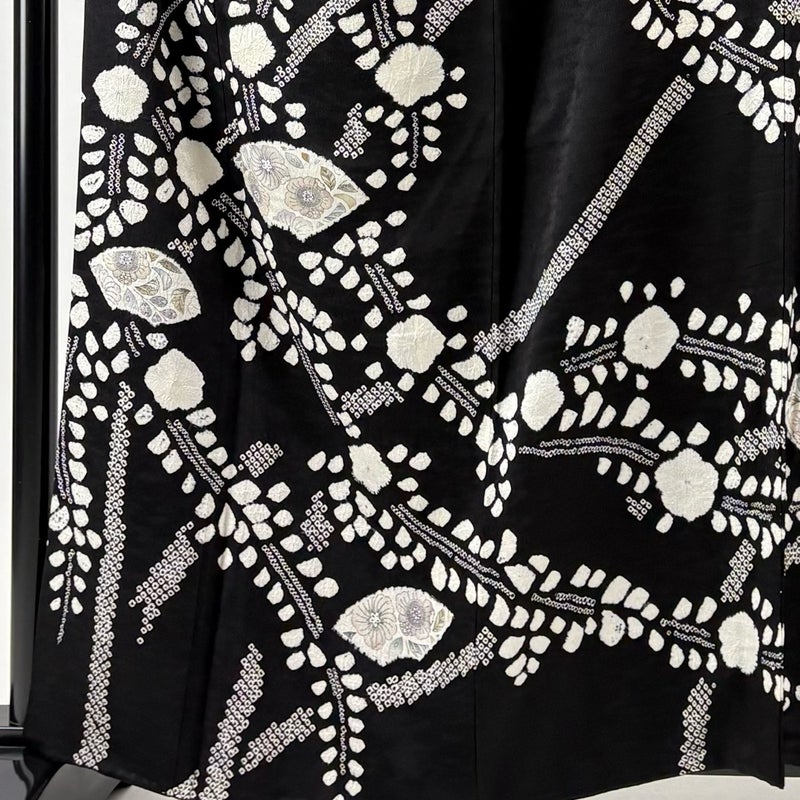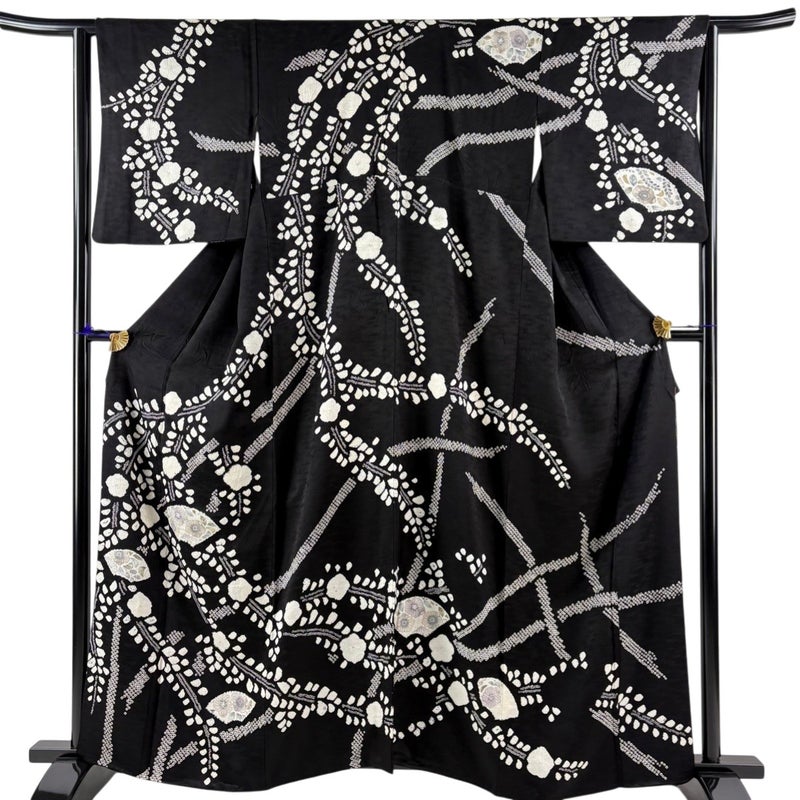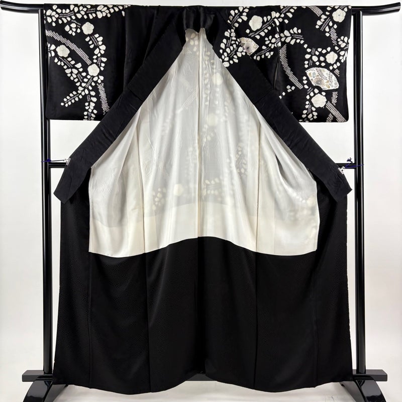 【訪問着】 黒系 黒 秀品 B 約160cm~約169cm 裄丈63cm-64cm (M)size 袖丈48cm 7990-9980 二万以下