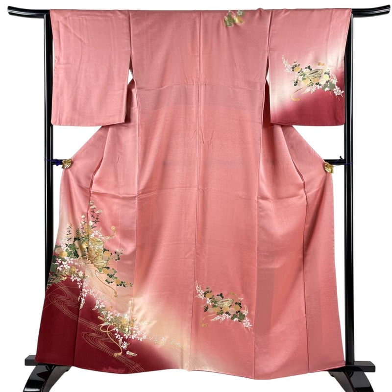 【訪問着】 赤系 ピンク 秀品 B 約160cm~約169cm 裄丈66cm (M)size 袖丈50cm-60cm 7990-9980 二万以下