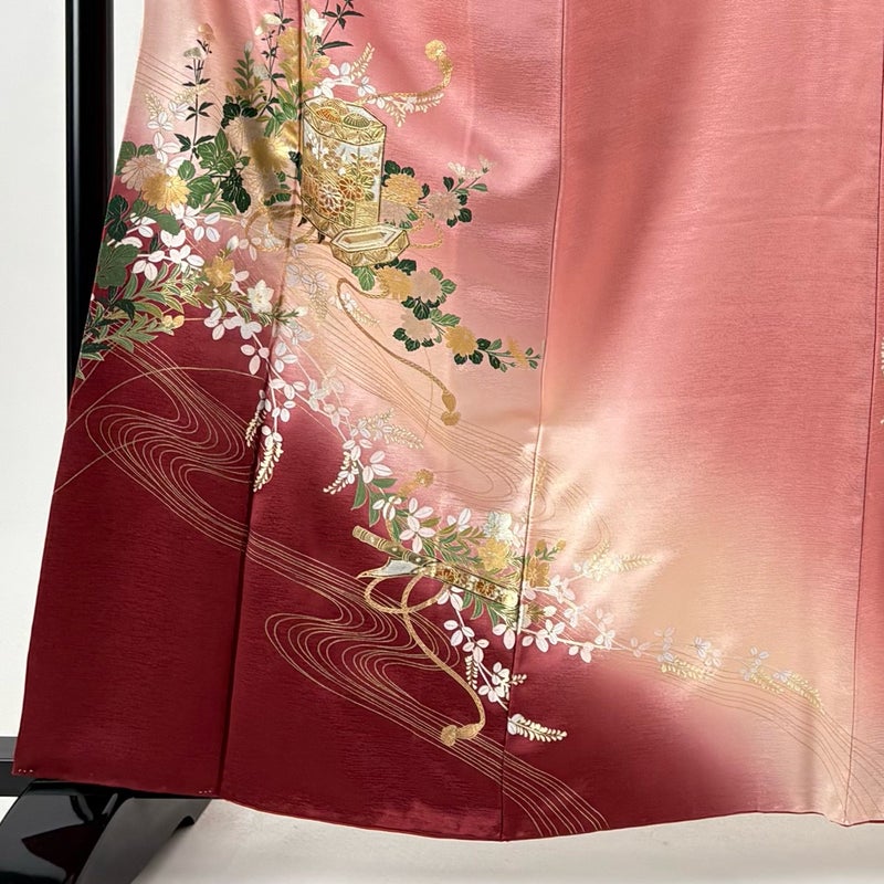 【着物ランク】秀品 【素材】正絹 【身丈】約160.5cm 【裄丈】約66cm 【袖丈】約52.5cm 【袖幅】約33.5cm 【前幅】約24cm 【後幅】約29cm 【サイズ】M 【着物仕立て】袷 【着用時期】10~5月 【状態ランク】ランクB 【着物着用シーン】披露宴、パーティー、お見合い、式典、茶会