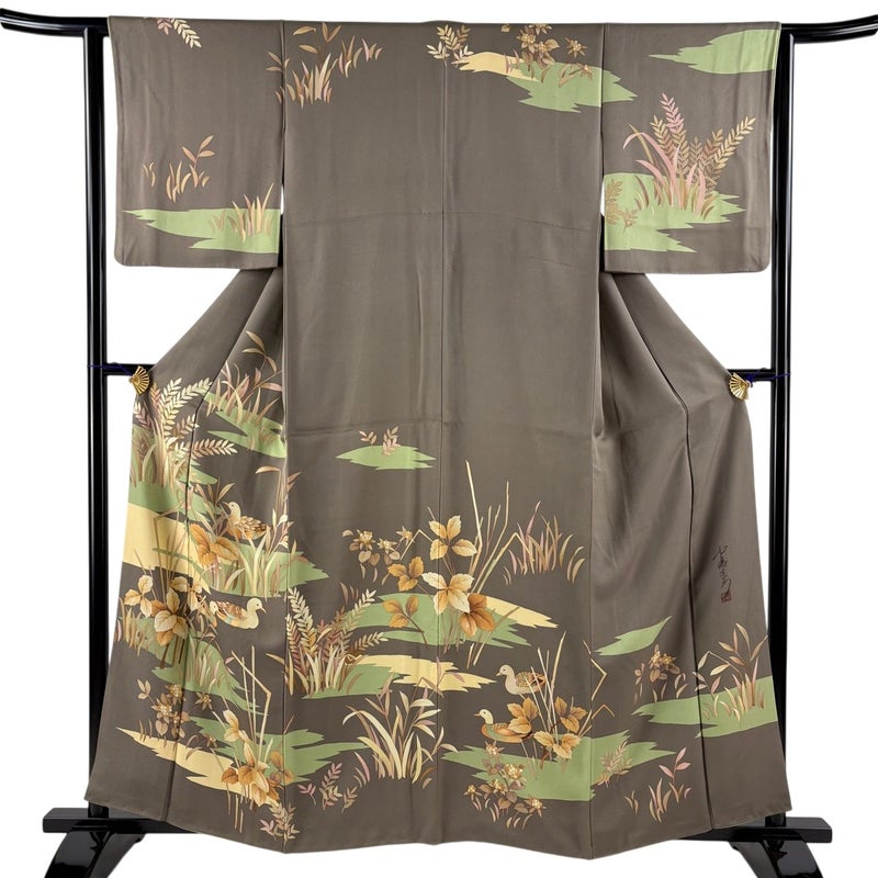 【訪問着】 灰色系 灰茶 秀品 B 約160cm~約169cm 裄丈63cm-64cm (S)size 袖丈48cm 7990-9980 二万以下