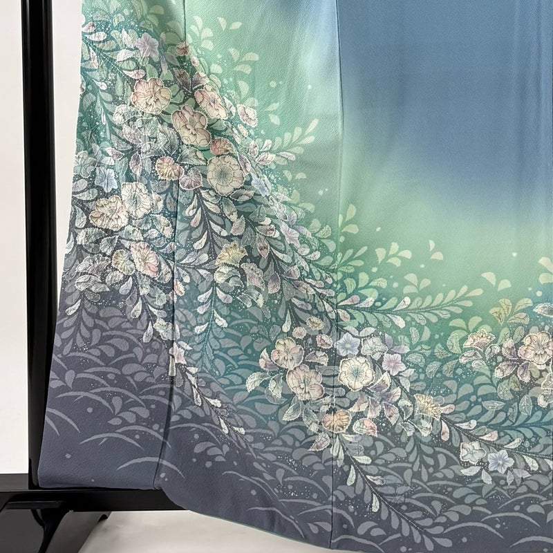 【訪問着】 青系 水色 名品 B 約160cm~約169cm 裄丈63cm-64cm (S)size 袖丈49cm 9990-29990 二万以下