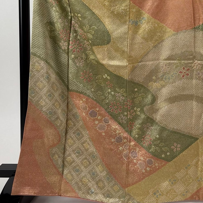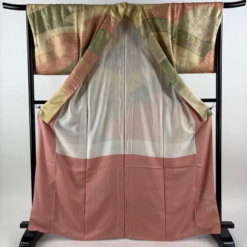 【着物ランク】名品 【素材】正絹 【身丈】約167cm 【裄丈】約68cm 【袖丈】約49cm 【袖幅】約35cm 【前幅】約24.5cm 【後幅】約30cm 【サイズ】L 【着物仕立て】袷 【着用時期】10~5月 【状態ランク】ランクB 【着物着用シーン】披露宴、パーティー、お見合い、式典、茶会