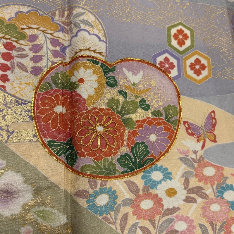 【着物ランク】名品 【素材】正絹 【身丈】約160.5cm 【裄丈】約65.5cm 【袖丈】約55.5cm 【袖幅】約34cm 【前幅】約23.5cm 【後幅】約30.5cm 【サイズ】M 【着物仕立て】袷 【着用時期】10~5月 【状態ランク】ランクC 【着物着用シーン】披露宴、パーティー、お見合い、式典、茶会