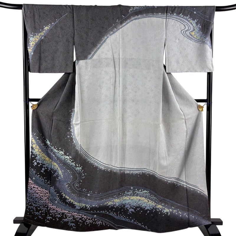 【訪問着】 灰色系 灰色 名品 B 約160cm~約169cm 裄丈63cm-64cm (M)size 袖丈49cm 9990-29990 二万以下