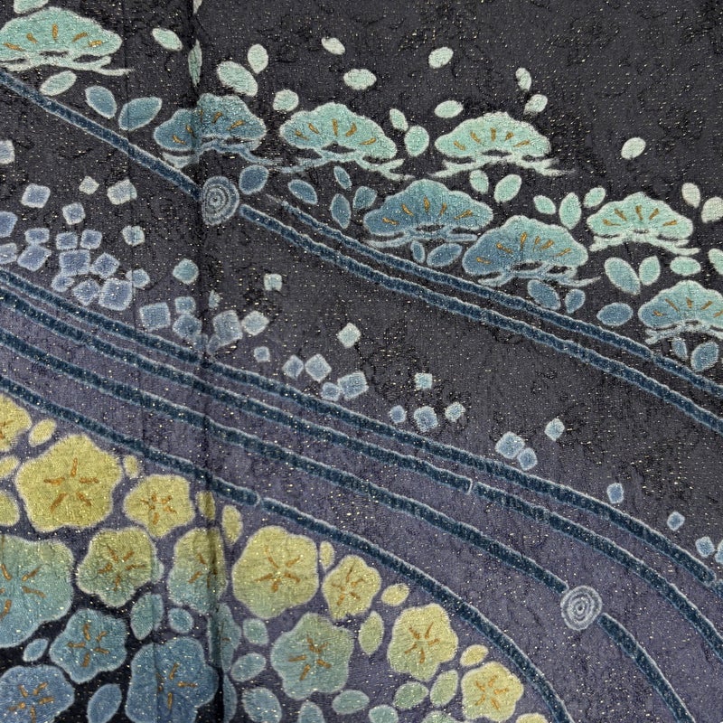 【着物ランク】名品 【素材】正絹 【身丈】約163cm 【裄丈】約64cm 【袖丈】約49cm 【袖幅】約34.5cm 【前幅】約24cm 【後幅】約30.5cm 【サイズ】M 【着物仕立て】袷 【着用時期】10~5月 【状態ランク】ランクB 【着物着用シーン】披露宴、パーティー、お見合い、式典、茶会