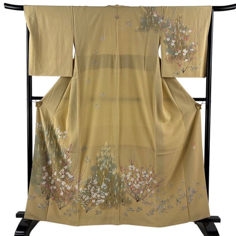 【訪問着】 黄色系 山吹色 名品 B 約160cm~約169cm 裄丈67cm-68cm (M)size 袖丈50cm-60cm 9990-29990 二万以下