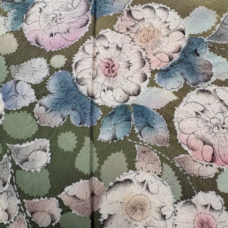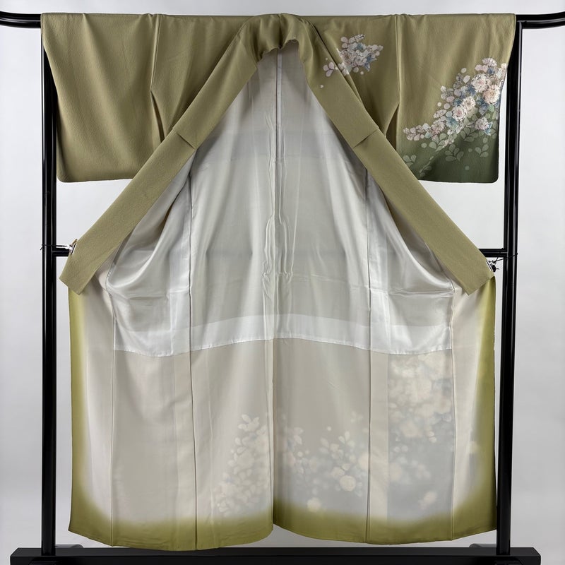 【訪問着】 緑系 抹茶色 名品 A 約150cm~約159cm 裄丈66cm (M)size 袖丈47cm 9990-29990 美品 二万以下