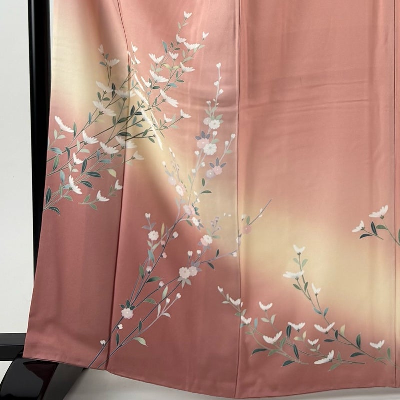 【着物ランク】秀品 【素材】正絹 【身丈】約165.5cm 【裄丈】約69cm 【袖丈】約50cm 【袖幅】約35.5cm 【前幅】約24cm 【後幅】約29cm 【サイズ】L 【着物仕立て】袷 【着用時期】10~5月 【状態ランク】ランクB 【着物着用シーン】披露宴、パーティー、お見合い、式典、茶会