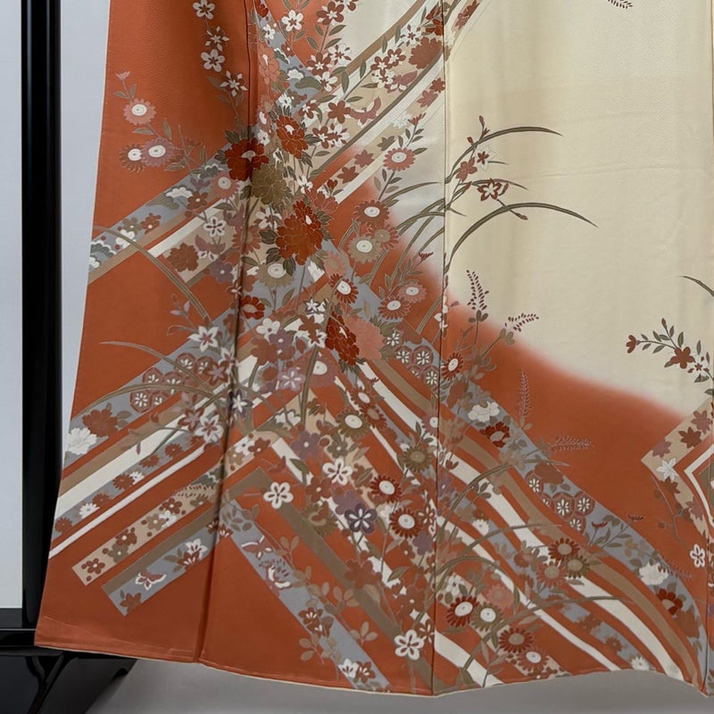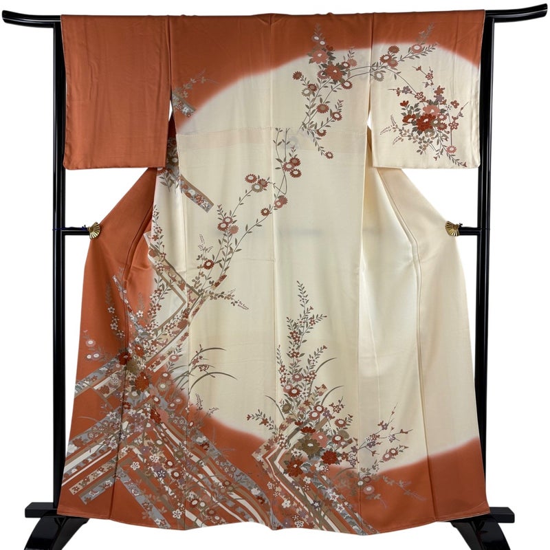 【訪問着】 赤系 オレンジ 秀品 B 約160cm~約169cm 裄丈65cm (M)size 袖丈49cm 7990-9980 二万以下