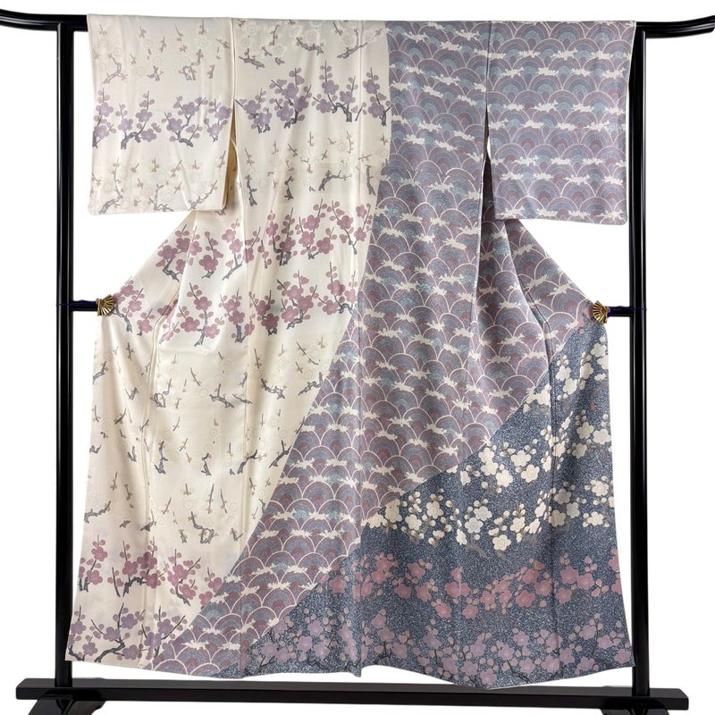 【着物ランク】名品 【素材】正絹 【身丈】約155cm 【裄丈】約62cm 【袖丈】約47.5cm 【袖幅】約33cm 【前幅】約24cm 【後幅】約30cm 【サイズ】S 【着物仕立て】袷 【着用時期】10~5月 【状態ランク】ランクB 【着物着用シーン】披露宴、パーティー、お見合い、式典、茶会