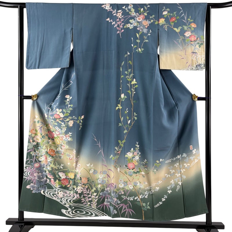 【訪問着】 灰色系 青灰色 名品 C 約150cm~約159cm 裄丈63cm-64cm (S)size 袖丈48cm 9990-29990 二万以下