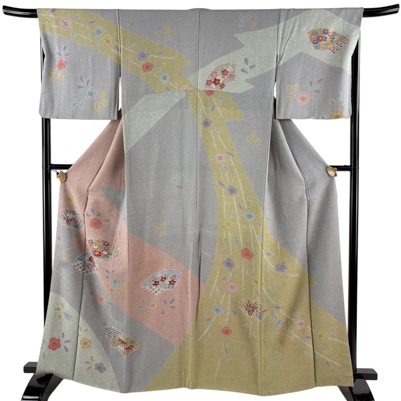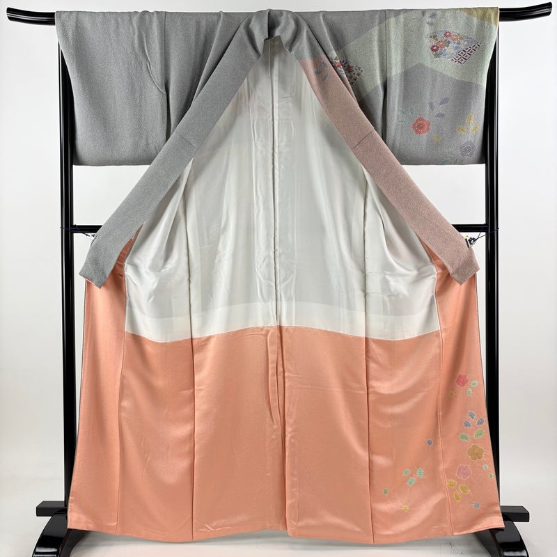 【訪問着】 灰色系 青灰色 名品 B 約160cm~約169cm 裄丈67cm-68cm (L)size 袖丈48cm 9990-29990 二万以下