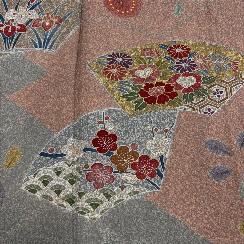 【着物ランク】名品 【素材】正絹 【身丈】約164cm 【裄丈】約68cm 【袖丈】約48cm 【袖幅】約34.5cm 【前幅】約24cm 【後幅】約30cm 【サイズ】L 【着物仕立て】袷 【着用時期】10~5月 【状態ランク】ランクB 【着物着用シーン】披露宴、パーティー、お見合い、式典、茶会