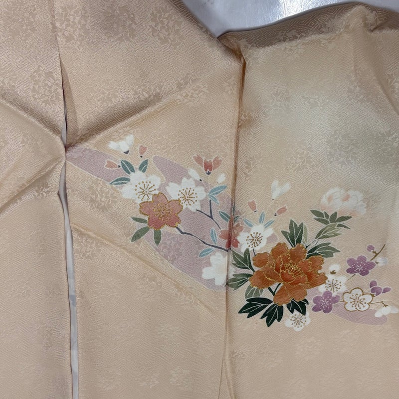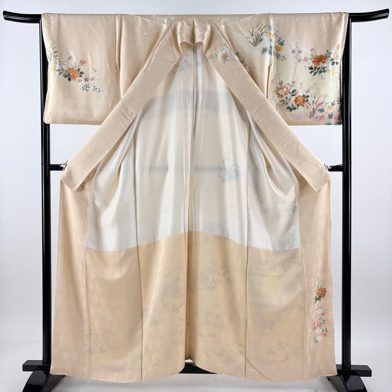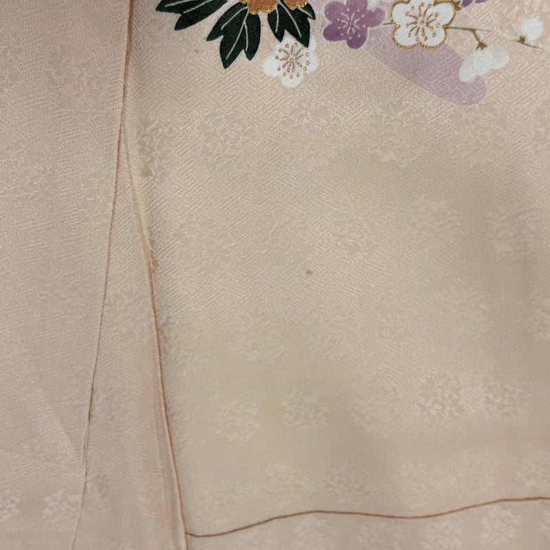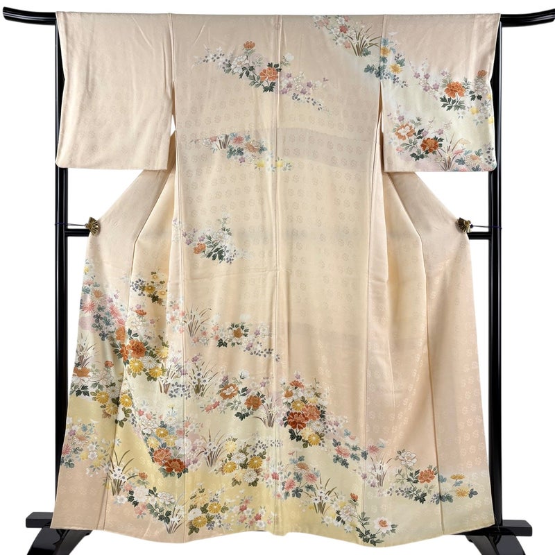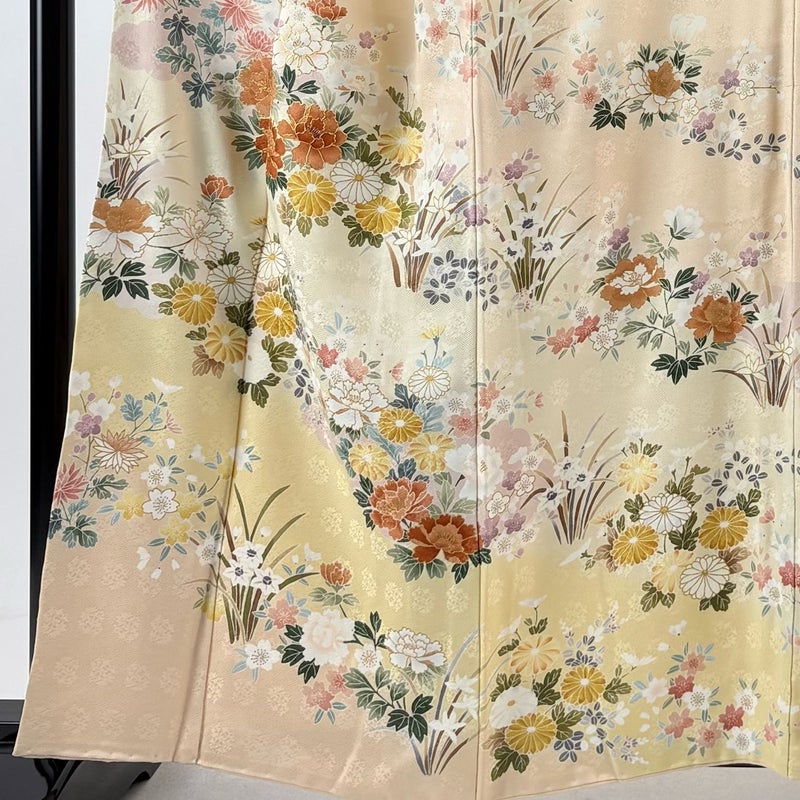 【着物ランク】名品 【素材】正絹 【身丈】約159.5cm 【裄丈】約66cm 【袖丈】約49cm 【袖幅】約35cm 【前幅】約25cm 【後幅】約30.5cm 【サイズ】M 【着物仕立て】袷 【着用時期】10~5月 【状態ランク】ランクB 【着物着用シーン】披露宴、パーティー、お見合い、式典、茶会
