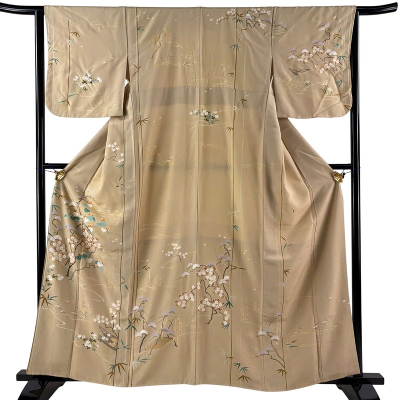 【訪問着】 白系 ベージュ 名品 C 約160cm~約169cm 裄丈63cm-64cm (S)size 袖丈48cm 9990-29990 二万以下