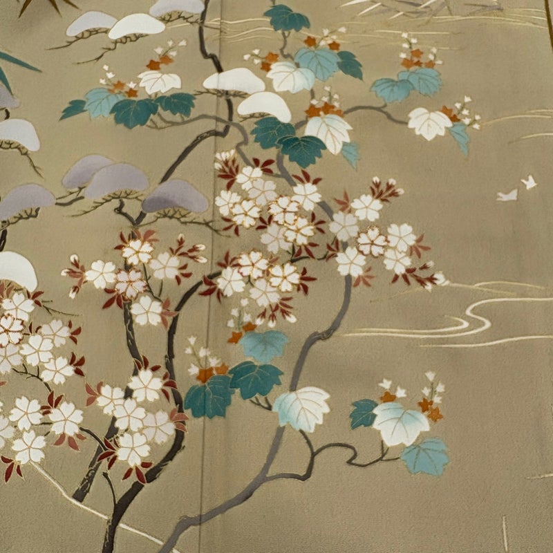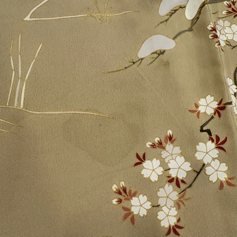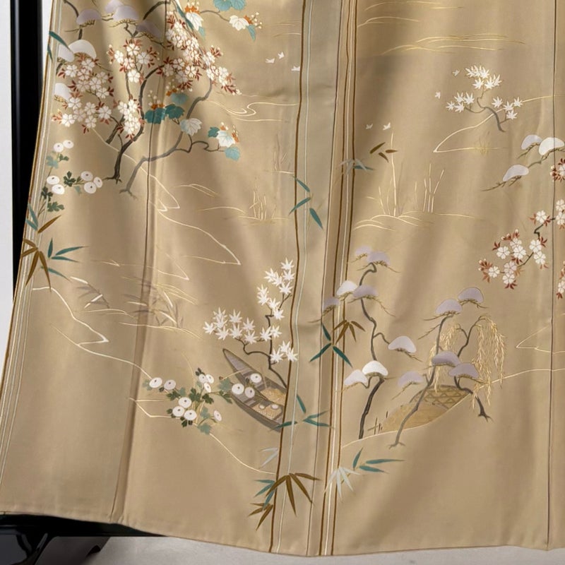 【着物ランク】名品 【素材】正絹 【身丈】約161cm 【裄丈】約63.5cm 【袖丈】約48.5cm 【袖幅】約33.5cm 【前幅】約24.5cm 【後幅】約29.5cm 【サイズ】S 【着物仕立て】袷 【着用時期】10~5月 【状態ランク】ランクC 【着物着用シーン】披露宴、パーティー、お見合い、式典、茶会