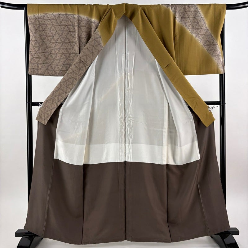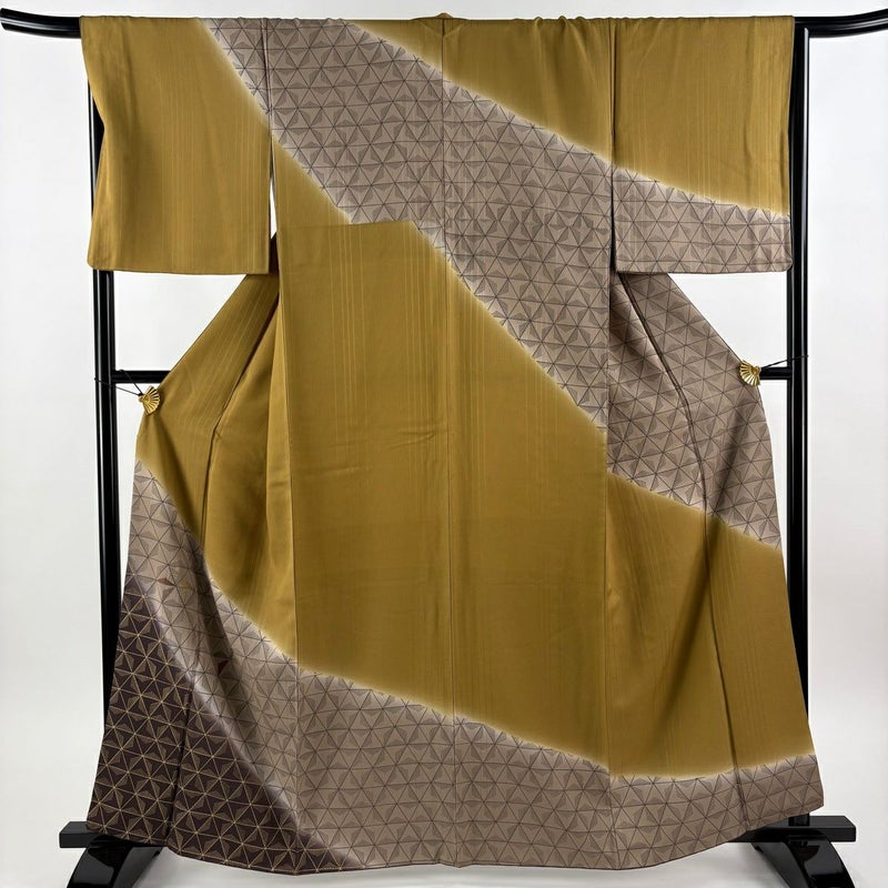 【訪問着】 黄色系 山吹茶色 秀品 B 約160cm~約169cm 裄丈67cm-68cm (M)size 袖丈49cm 9990-29990 五万以下