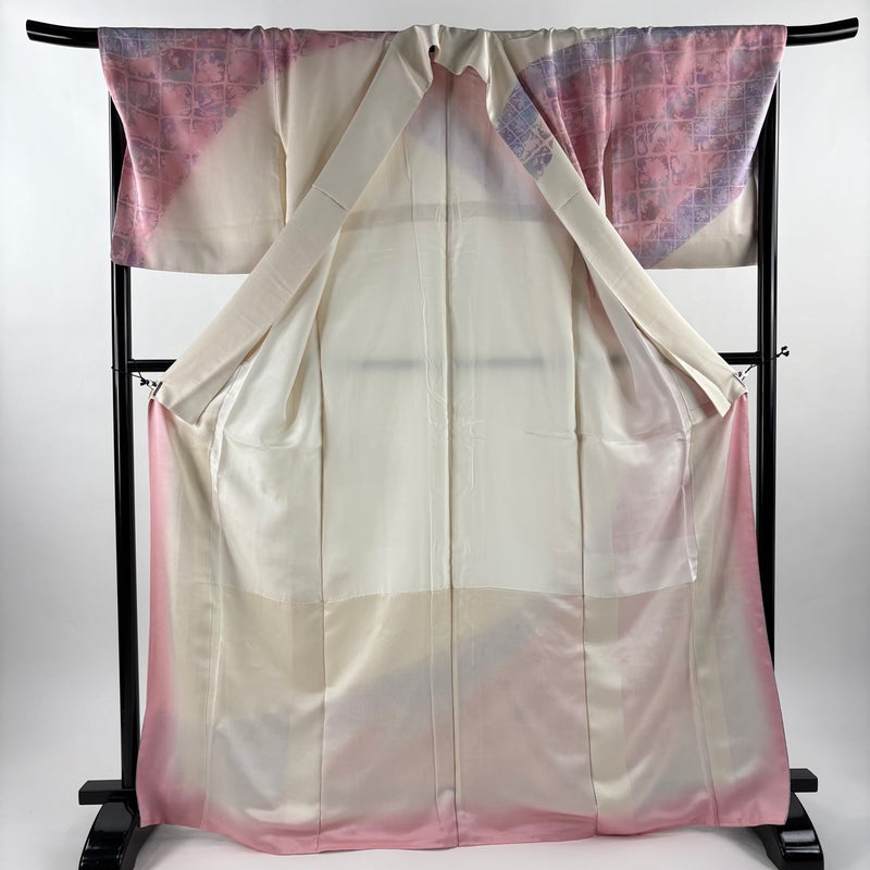 【着物ランク】秀品 【素材】正絹 【身丈】約167cm 【裄丈】約68.5cm 【袖丈】約49.5cm 【袖幅】約35cm 【前幅】約26cm 【後幅】約29cm 【サイズ】L 【着物仕立て】袷 【着用時期】10~5月 【状態ランク】ランクB 【着物着用シーン】披露宴、パーティー、お見合い、式典、茶会