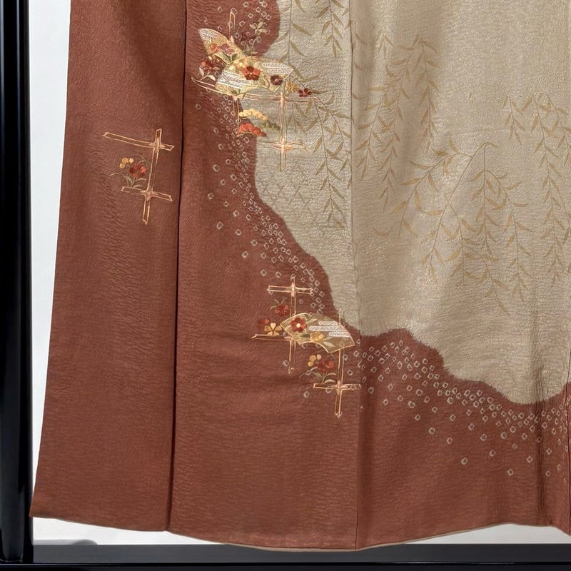 【訪問着】 赤系 赤茶 秀品 C 約150cm~約159cm 裄丈63cm-64cm (S)size 袖丈48cm 7990-9980 二万以下