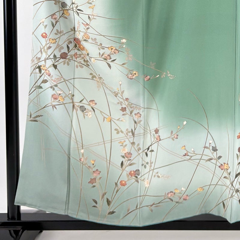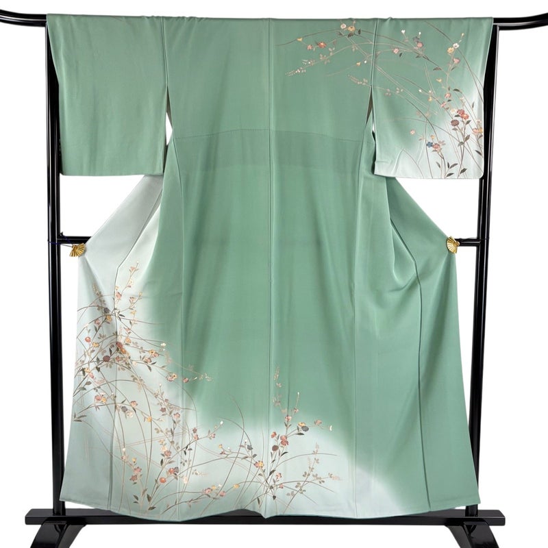 【訪問着】 緑系 薄緑 秀品 C 約150cm~約159cm 裄丈66cm (M)size 袖丈49cm 7990-9980 二万以下