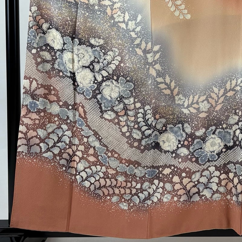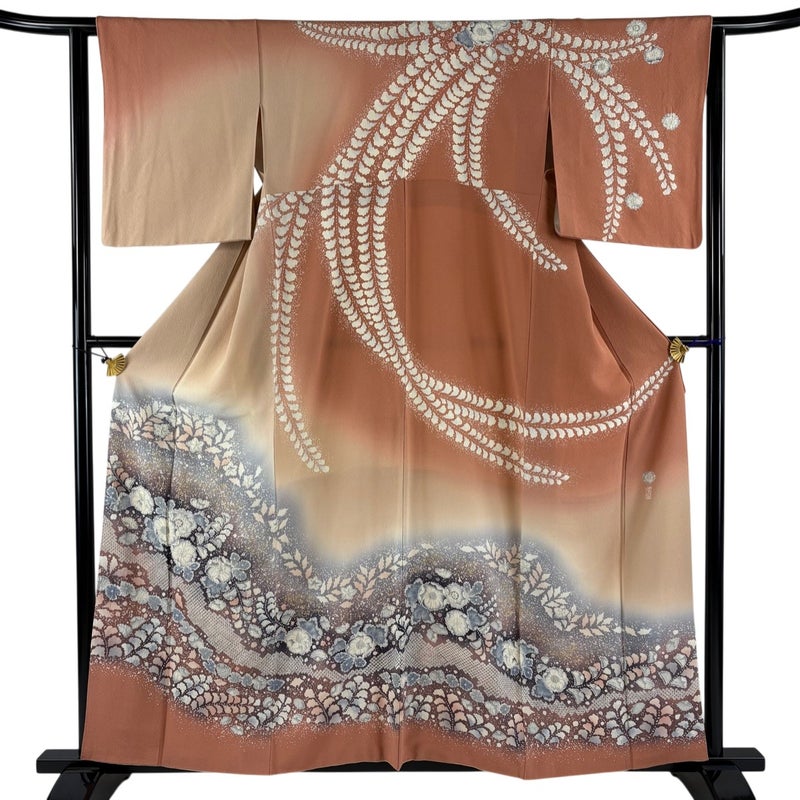 【訪問着】 赤系 ピンクベージュ 秀品 A 約150cm~約159cm 裄丈62cm以下 (S)size 袖丈49cm 9990-29990 美品 二万以下