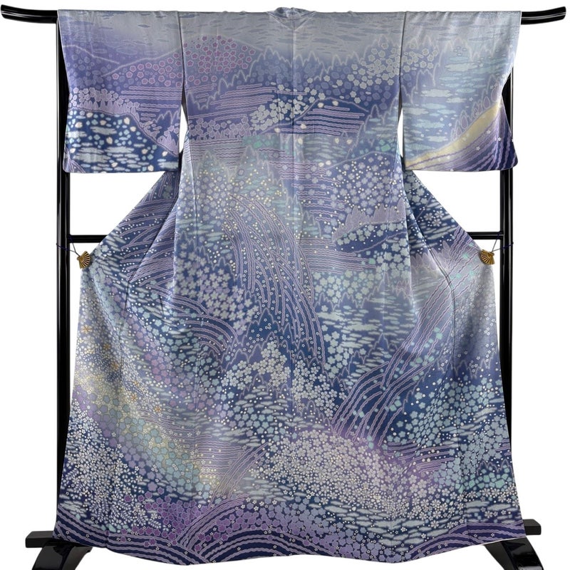 【訪問着】 紫系 青紫 逸品 A 約160cm~約169cm 裄丈67cm-68cm (L)size 袖丈49cm 30000- 美品 五万以下